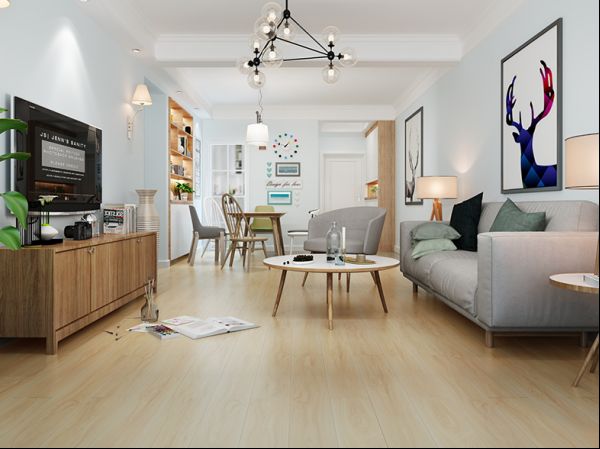 本款地板以温暖稳定的暖黄色为主基调,搭配大大的落地窗,能够带来明亮的采光,营造安定平和的北欧空间。