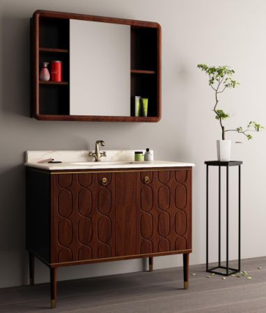 编织古韵系列浴室柜FPGM46107-R将中式编织元素运用于设计之中,婉约柔和的线条,蔓延在内敛稳重的胡桃木色之上,内敛于心的小龙虾同款色号——酸枝红色,将卫浴空间装点得更温婉动人。