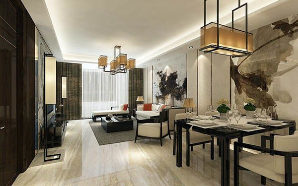 新中式风格则褪去传统中式风格的厚重,在局部上,也不再局限于传统中式风格的轴对称和平八稳,整体设计更加简洁,讲究空间层次感,以阴阳平衡概念调和室内生态,整体感觉也更为轻松。