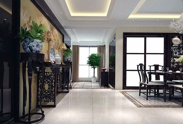 新中式风格由于使用材料没有那么多的限制,它所呈现出来的色彩和质感都非常的丰富。并且它会运用壁纸、玻化砖等材质做墙面和地面的处理。应该说,新中式风格非常好地打破了中式风格的沉闷和单调。而且经过这么一个变化,原本只有中老年人喜欢的中式风格就变得老少皆宜起来了。