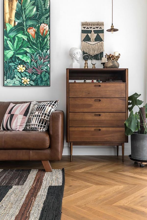 雨林的仲夏,富饶饱满而自带芬芳,热带雨林而来的肆意清新扑面而来。虎皮兰叶片挺立如箭,龟背竹四季常青,充满热带风情的植物养殖在客厅里,与绿意盎然的《仲夏雨林》相得益彰。