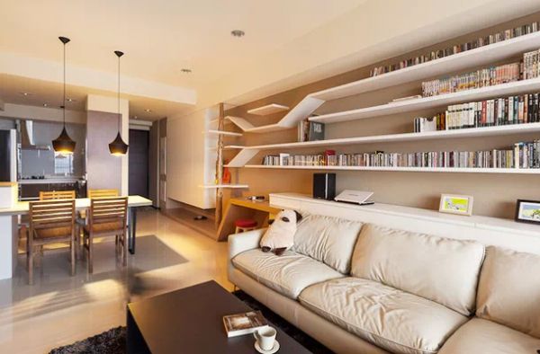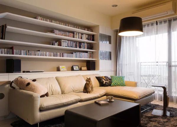 飘窗采用白色系,采光极好,沙发后就是书架,完美结合。