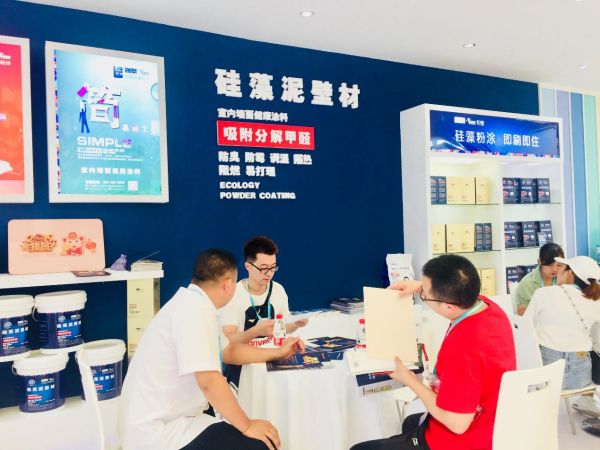 【叶伟杰】:盼盼硅藻全系产品有和壁硅藻粉涂、硅藻泥、硅藻功能产品、水性生态涂料、硅藻砖、硅藻板、硅藻土复合材料等七大系列三十多种产品,本次展会我们主要展出的是和壁硅藻粉涂、硅藻泥(可擦洗)以及水性硅藻泥。