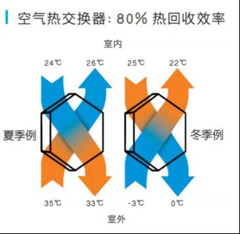 热回收高达80% 大幅度节省空调、地暖的能耗