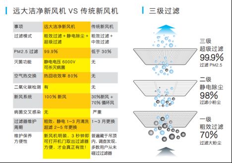 除此之外,远大SG洁净新风机强大的三级过滤系统可以做到清除空气中大部分的粉尘,PM2.5的过滤比例达到了99.9%,确保室内空气比室外洁净100倍以上。其独创的静电除尘技术可以消灭空气中的细菌与病毒,让室内空气不论何时都能健康洁净。
