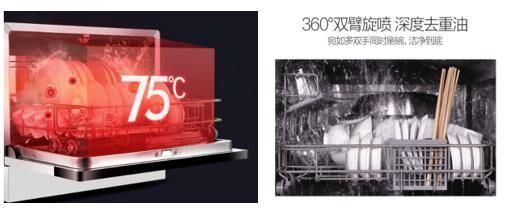 杀菌,消除每一个餐盘钉子户 通常我们用手洗碗的时候,用热水将泡沫冲洗干净,简单沥干后就会放进碗柜里,看起来碗碟表面的油污都去除了,但这只是肉眼可见的干净。在我们肉眼不可见的地方还残留着许多细菌和霉菌,除了日常外界接触外,它们还来自于你长期使用的洗碗布,它是滋生细菌的温床,而你在洗碗时为了适应双手设定的温水,根本无法做到深度清洁。而万和全自动洗碗机的水温高达75℃,突破传统水温,除了能够高温膨化油脂,强力分解顽固油污外,还能够除菌消毒,达到99.99%的除菌率,省去了消毒柜的花费,餐具即洗即用。除此之外,在清洗时还搭配了双喷臂系统,拥有18000pa的强劲水压,可正向反向多方向旋转,一分钟可旋转冲洗30次,保证洗碗机内360°无死角,污渍去除,洁净到底。