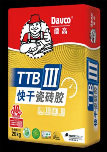 德高TTBI、TTBI+和TTBII三款瓷砖胶,它们都属于分销产品,均可在德高各零售网点购买到。而德高TTB III 快干瓷砖胶是专卖店专属产品,只能在德高各大专卖店购买。德高TTB III 快干瓷砖胶,具有快干功能,固化相对时间更短,能有效提高施工效率,快速粘结低吸水率瓷砖,从而避免瓷砖铺贴后下滑的现象。其性能指标为C1FT,这也表明德高TTBIII瓷砖胶除了各项粘结性能都达0.5MPa以上之外,还具有抗滑移快干固的特性。