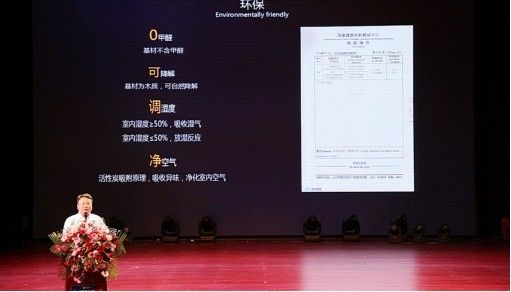 潘伟先生在现场解锁了这款黑科技地板的其他特点,除了优越的防火性能,还具备防水耐潮、净化空气、调节湿度、隔音保温、抗菌防霉等性能。防火防水木地板无甲醛和苯等任何有害物质,不燃烧无烟毒,是一种非常稳定、寿命长、耐久性强的天然可再生无污染的新型无机材料,为建筑材料行业的可持续发展提供了新的方向。潘伟先生最后讲到,安全绿色、经久耐用的防火防水木地板是将高新技术融入品质生活的典范,将给消费者带来全新的体验!