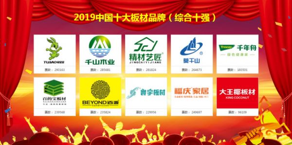 “十大板材品牌”是板材行业规模大、品质优、服务好,口碑相当深入人心的综合十强品牌。这是中国品牌、品质、品位的象征,代表着板材行业未来发展的方向,也是消费者的选择与认可。2019年度板材行业全国网络评选已圆满结束,让我们期待下一期各家品牌的精彩表现!