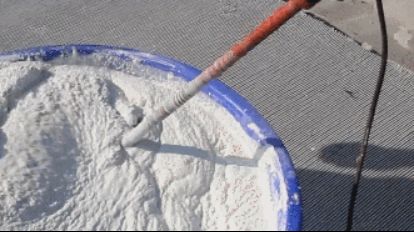 搅拌完成后将浆料倒在基面上。在定厚时,需要使用专业工具(德高隔热砂浆工耙)将隔热砂浆浆料铺平及保证隔热砂浆的施工厚度。施工前,请穿戴好雨鞋等护具。
