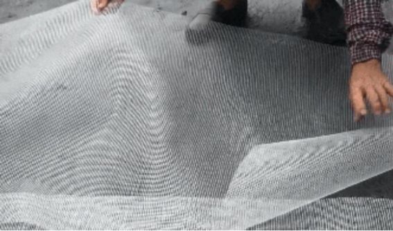 其次,对施工屋面进行玻璃纤维布的铺贴并固定,两张玻纤布交接处至少达到200px,玻纤布须选择耐碱性的;网眼达到5X5mm;平方米重量为160g。
