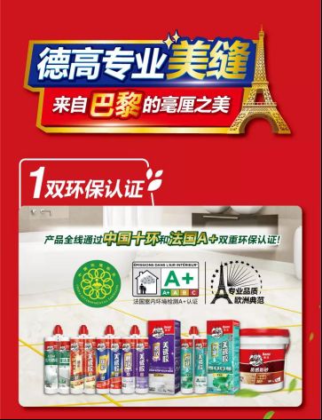 德高美缝产品经权威环保认证,种类多样,色泽高雅,全面满足业主需求。2018年,德高美瓷胶累计卖出了2625982组!