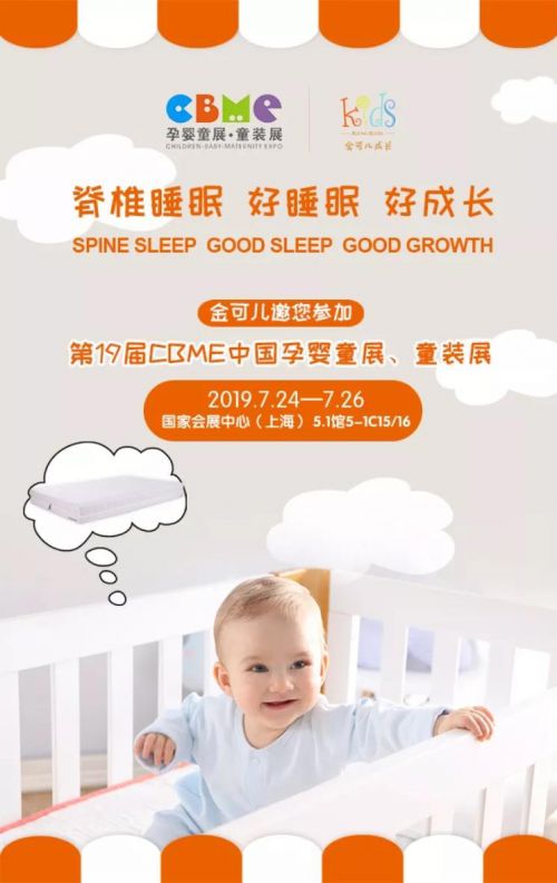 7月24日-26日,第19届CBME中国孕婴童展将在上海国家会展中心举行。作为布局广阔的高端寝具领导者,此次,金可儿中国将携孕婴童睡眠生力军品牌——金可儿成长登场亮相5.1馆5-1C15/16,为广大家长和经销商们奉上一场护脊大剧。