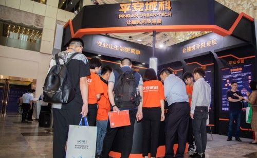 第五届工程建设行业互联网大会平安城科展台众多同行咨询(摄影 苏锐)