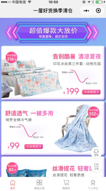 2019年5月初,梦洁家纺通过微盟的小程序解决方案,上线“一屋好货”商城。