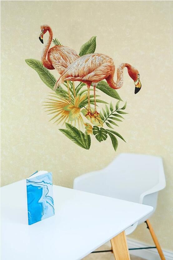 汇明A+墙布刺绣背景墙《火羽双影》中,两只火烈鸟红腿如林,长颈交互,整体画质细腻,色泽饱满,画面立体生动。整幅背景墙利用刺绣工艺,表面平整顺滑,层次分明有序,提升居室的品味与格调,是不可多得的墙面装饰背景。