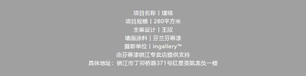 整体采用中性色系配色,不用担心安全的中性色会过分平淡。相反,用多个中性色搭配会显得很有层次和韵味,所有风格的概念在这些色彩面前都被无限缩小,唯留下本真和静谧的高级美。少而精致的装饰便能令中性色空间顿时提神,比如电视背景墙所运用的拥有独特纹理效果的腾图Tunto-VANA墙基布(4729灰)。