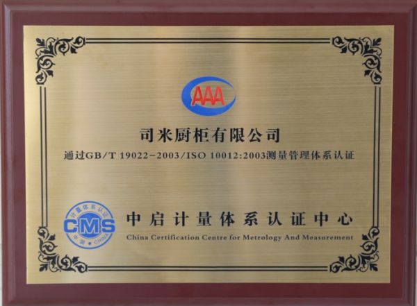 捷报!司米橱柜荣获测量管理体系认证AAA证书