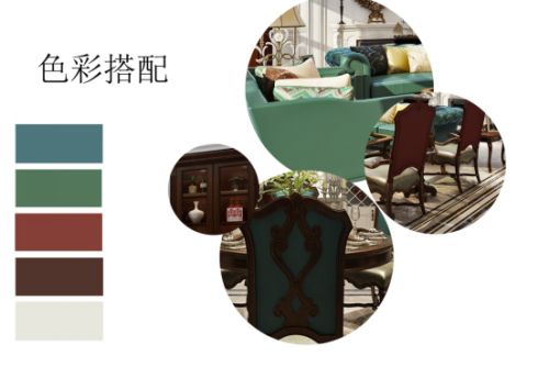 在色彩搭配上采用了大胆的配色,在视觉上红色与绿色形成了强烈的对比,墙上采用的是灰白色的护墙板,提高了整体空间的时尚感,增添高品质的生活理念。