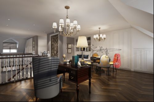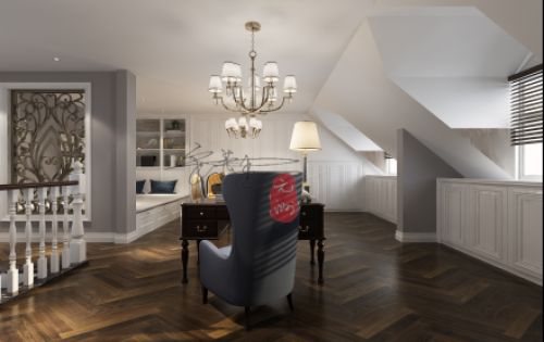 二楼整体搭配采用了灰色与棕色,更能体现出生活态度,地面采用的是地板通铺,既保温又对身体有好处。