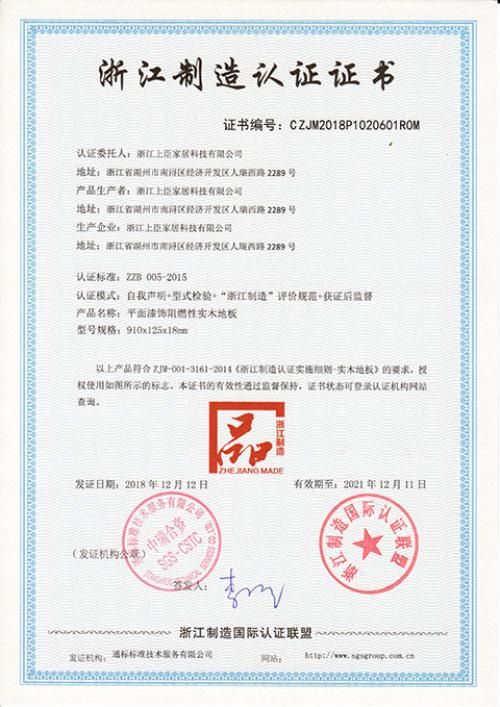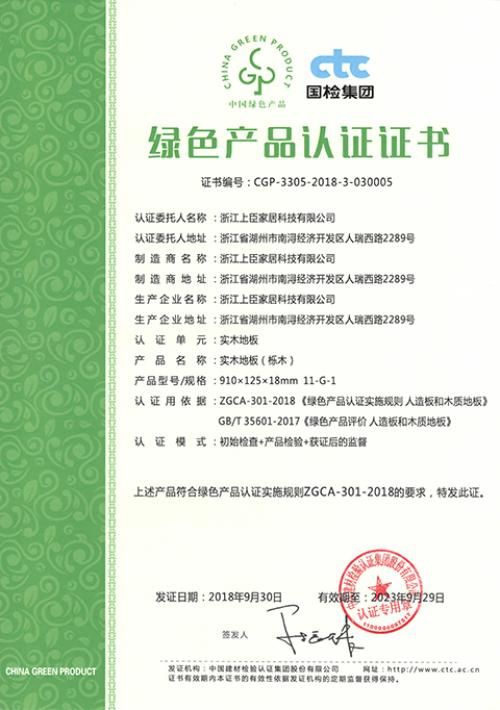 11月2日,湖州市质量大会成功召开。会上,国家市场监管总局、国家认监委、湖州市政府授予上臣地板“绿色产品认证”!这是全国首批绿色产品认证证书,在整个木地板行业仅6家企业获得,充分体现了国家层面颁布的荣誉权威性、稀缺性。