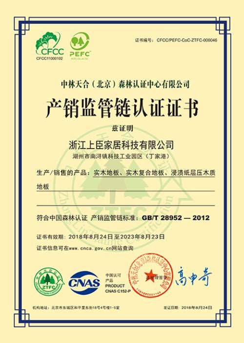 在全球木材资源日渐匮乏的今天,地板产业作为资源密集型产业,如何平衡生态与经济效益的关系成为摆在企业面前的一道现实命题。作为国家首批中国森林认证-产销监管链认证企业,上臣地板一直秉承绿色可持续发展理念,从原材料的来源、生产加工、制造、运输、储存、销售直至最终消费者的整个链条,全力做好产销监管,确保出自上臣的林产品原料全部来自可持续经营的森林之中。