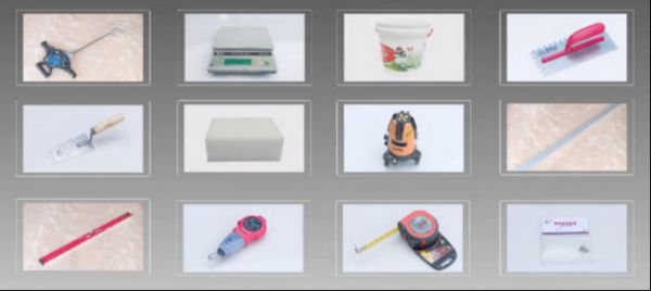 首先是定位工具,有激光水平仪、水平尺、墨斗和卷尺等定位和测量工具,这些工具是保证贴砖整齐美观必不可少的。其次是铲刀,既可以用来铲除基层上的凸起物,又可以后期辅助齿形刮板进行瓷砖胶的粘贴。然后是清洁工具,比如海绵滚筒这些清洁基层和瓷砖背面的工具。最后是电动搅拌器和搅拌桶,必须强调的是搅拌瓷砖胶必须使用电动搅拌器,不可直接在地面用铁铲搅拌,由于瓷砖胶中含有添加剂,如果直接用铁铲搅拌,很难使得瓷砖胶中的成分均匀分散,这样会极大地降低瓷砖胶应有的性能。此外,如果要预留管道或者电槽位置,那么还需要有瓷砖切割和开孔的工具。