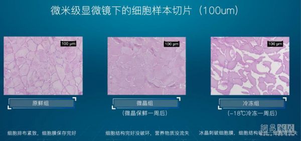 微晶一周鲜VS传统冷冻:冰晶大小竟相差300倍