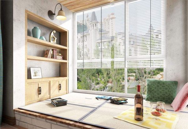 对于特别小的阳台,我们也可以将它设计成榻榻米式的外飘窗,上面可以躺着休息看看书,榻榻米下方还可以打制多个矮柜存放一些书籍等。