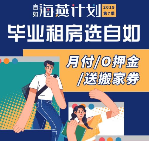 为了助力毕业生租房,自如连续六年推出“海燕计划”。累计超过60万毕业生加入“海燕计划”。今年“海燕计划”第七季已经起航,房租月付、0押金、送押金劵。不仅为毕业生减少首次付款压力,而且帮助毕业生解决了搬家难的烦恼。