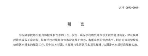 日前,中华人民共和国教育部发布了《中小学膜处理饮水设备技术要求和配备规范》行业标准(JY/T 0593-2019),对中小学使用的膜处理方法饮水设备的安装与施工、配备与处理、试验方法及标志、运输与贮存等均做了详细规定。该标准自2019年9月1日起实施。