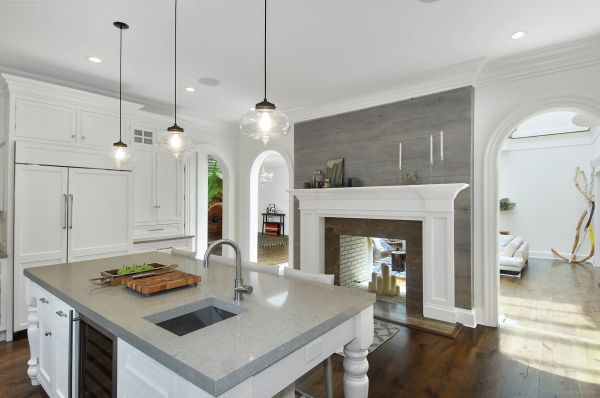 用吧台或者岛台做分区,能让厨房与客厅中间有一个缓冲地带,你可以把这定为厨房操作台,也可以是品酒区。