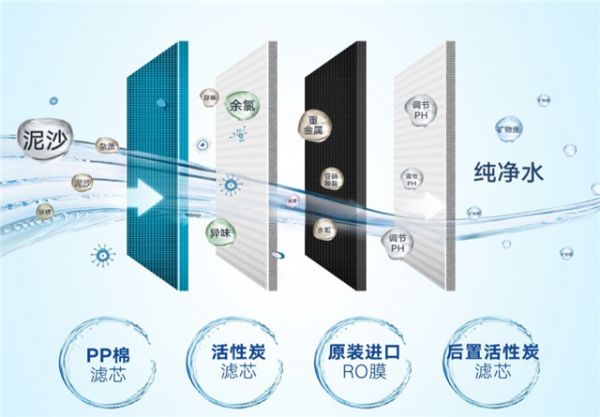 第三层:原装进口RO膜——去除抗生素、有机物重金属、亚硝酸盐、细菌、水垢