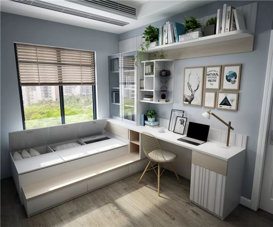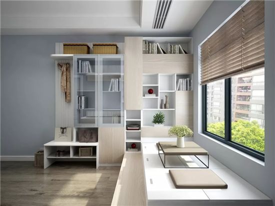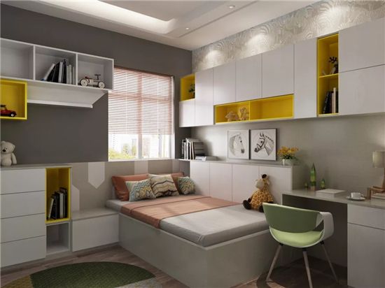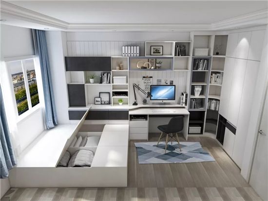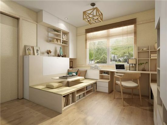 榻榻米运用“放纵”式设计,从下至上增加吊柜,大大增加收纳空间之余极具设计美感。比别人漂亮又好用的多功能榻榻米自然比普通版受欢迎~