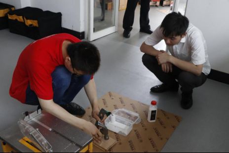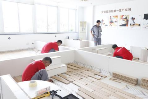 除了各显其能的激烈较量,比赛现场的学习氛围同样热烈:一位工程师在切割地板时采用了自己总结而得的特殊方法,做到了又快又好,吸引了现场选手纷纷学习。而他也非常乐于分享,向“竞争对手”倾囊相授,从而选手们在这一环节的品质与效率得到了整体提高。