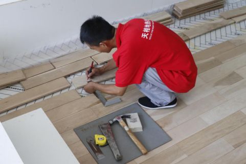 比赛正值酷暑高温,选手顾不上擦拭汗水,个个专心致志按照天格地板的铺装流程进行操作。虽然是同样的要求,却因各位选手多年练就的独门绝技而精彩纷呈:有的以媲美《最强大脑》般的心算能力,在脑海中“建模”,快速确定试铺方案;有的则对异型结构或阴角阳角的衔接反复斟酌,展现了强大的细节处理能力。