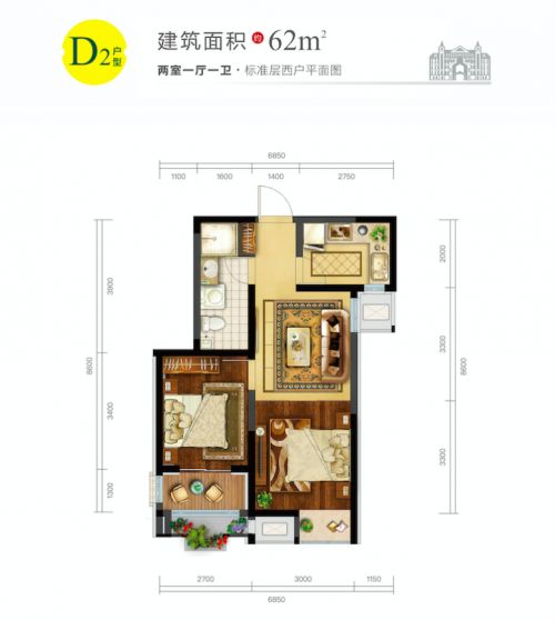 御湖温莎主打建筑面积约60-140㎡共计6种户型,打造一梯两户瞰湖全龄科技新居。如其中D2户型为建筑面积约为62㎡的两居室。主卧同时配备超大阳台和露台,提升居住品质,开放式次卧设计,延伸会客厅空间,拥有更多再创空间。