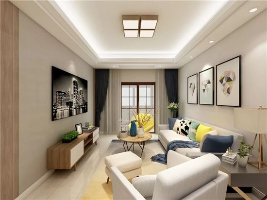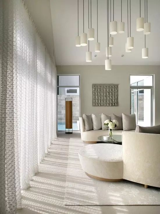 客厅作为会客和休闲的主要场所,一般采光通透,所以建议选择挡光、隔热又美观的厚棉麻或涤纶材质的窗帘。