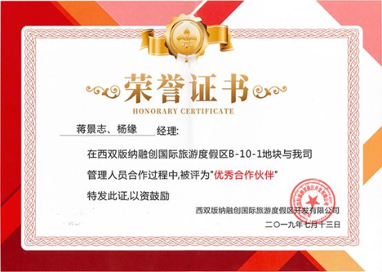 除了获得西双版纳融创度假区“优秀供应商”外,千川木门的蒋景志、杨缘两位项目经理还荣获了该项目“优秀合作伙伴”的称号。此次获奖,既是融创对千川的认可与肯定,更体现出千川木门致力于为客户提供过硬产品以及完善服务所做的不懈努力。