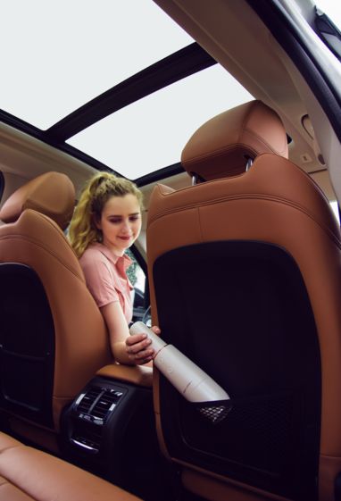 配合伸缩二合一吸嘴,即使车内狭小的空间内也可以应对自如:原始吸头,清理较为大的果壳、食物残渣;扁形吸头适应车内各个狭窄的卫生死角,清理各种毛发、零食碎屑;毛刷则适用于一些容易落灰的地方,如方向盘、空调口等。