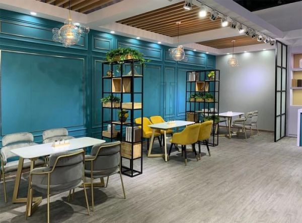 未来,我们将在产品花色上下功夫、做创新。现代餐饮空间轻奢网红风格比较多,一般是以色彩艳丽的产品为主,还有最近很流行的莫兰迪配色,餐饮空间的设计对产品的色彩个性化要求很高,因此我们大力开发独特的、又吸引眼球的颜色,我们同时也考虑到餐厅光线问题,如何使这些颜色既鲜艳又不刺眼,这是我们重点关注的问题。