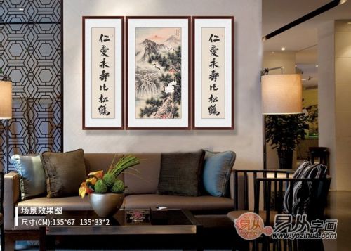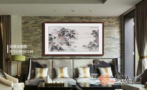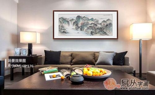 【都市生活久的人,都向往淡然清雅、宁静超凡的空间意境,像这样选一幅古韵幽然的山水画,不但满足了装修上的美感需求,更能体现主人非凡的品味与格调。】