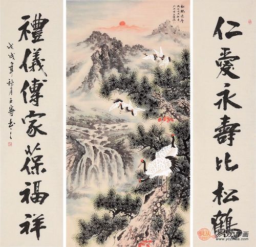 对联画 王宁老师新品创作山水画《松鹤延年》【作品来源:易从网】