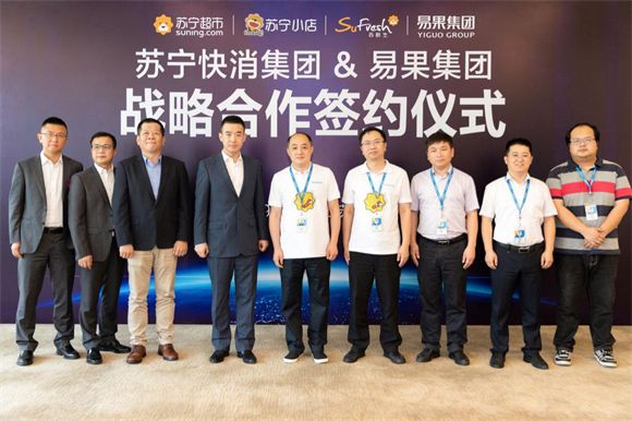 7月26日,正值一年一度的818大促刚刚打响,苏宁快消集团与易果集团在南京苏宁总部达成战略合作协议,双方将在生鲜供应链等领域建立全面深度的升级合作,加速生鲜全链路的协同战略布局。