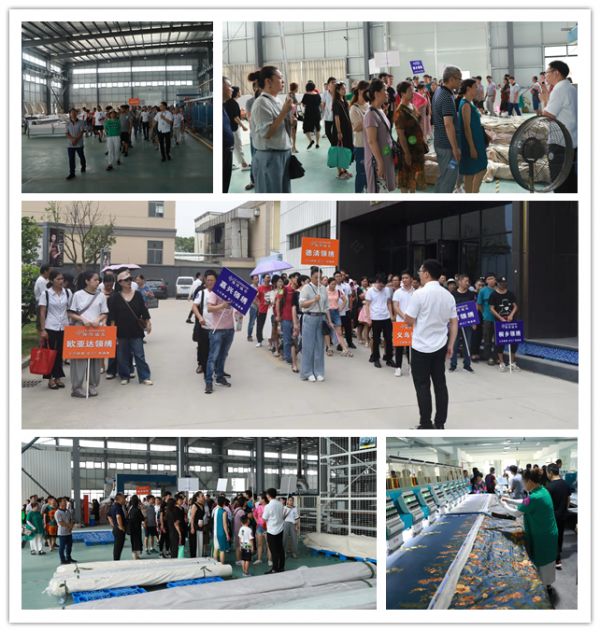 上午10时,联翔家居现代化工业园大门口早已人口攒动,来自全国各地的消费者陆续到达领绣基地,厂购盛宴开始。在工作人员的带领下,业主依次有序地前往各车间进行参观。