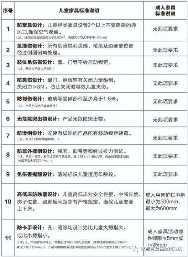同时, 圆弧倒角、杜绝密闭空间、避免尖锐拉手……诸多在儿童家具中被反复强调的细节处理,横跨到定制领域却仿佛成了虚设。在儿童家居市场中,不合格的产品有很多,这些产品大多存在结构安全、标示警告等各种隐患,容易导致儿童发生事故。与成年人家具相比,儿童家具对生产技术、安全环保有更高的要求,儿童家具有自己的安全标准。
