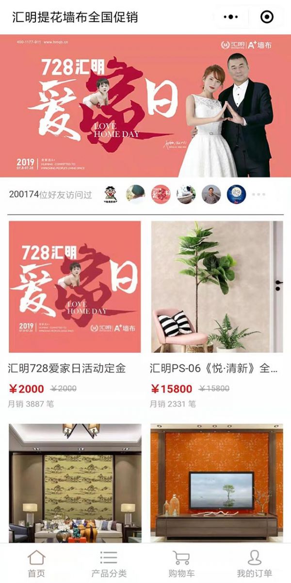 活动正式开始的第一周,汇明A+墙布便取得了骄人战绩,并在这21天中不断刷新交易数据。据统计,汇明A+墙布在“728汇明爱家日活动期间线上参与人数200174人,成交定金3887笔。