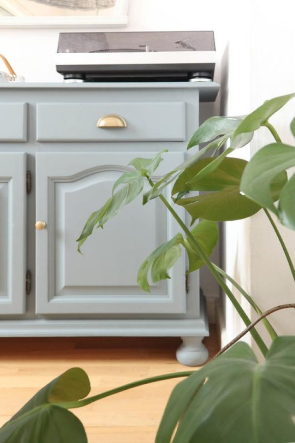 In the dining room we have a decapé old mirror, a very big cupboard with brass handles and an extendable tables which is very practical, since this couple loves to give big dinner parties to their friends.