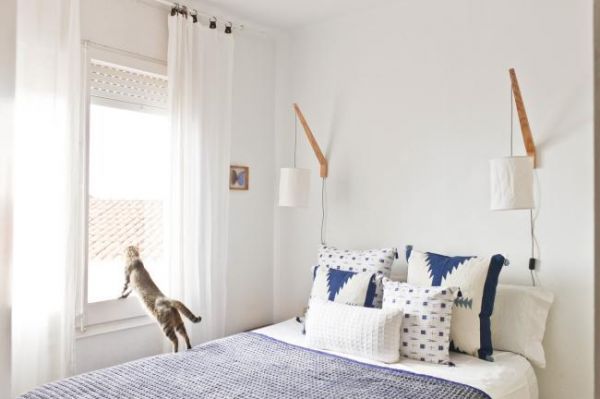 这间公寓的卧室空间都比较小,所以只能用来睡觉或面对大海发呆。没错,透过窗户可以看到大海,瞧那只猫咪正在看海呢——艺术家的房子,就像海子诗歌里描述的那样!;)