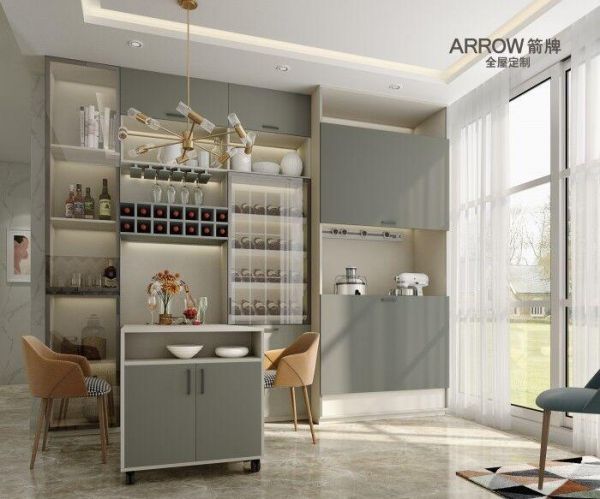 在每一个惬意的午后,我都想和你靠在一起,懒洋洋地拿着书打发着时光。在箭牌全屋定制【米伦】的餐边柜里拿出一瓶你喜欢的香槟,金黄色的酒液在阳光下折射出明亮的光彩。箭牌全屋定制【米伦】餐边柜的侧折叠移动餐桌就是不错的操纵平台,拉开折叠桌,在玻璃方杯里面倒入不停冒着气泡的雪碧,做一杯清爽的咸柠七,我知道你又会微微一笑,揶揄我总是爱喝小孩子喝的。